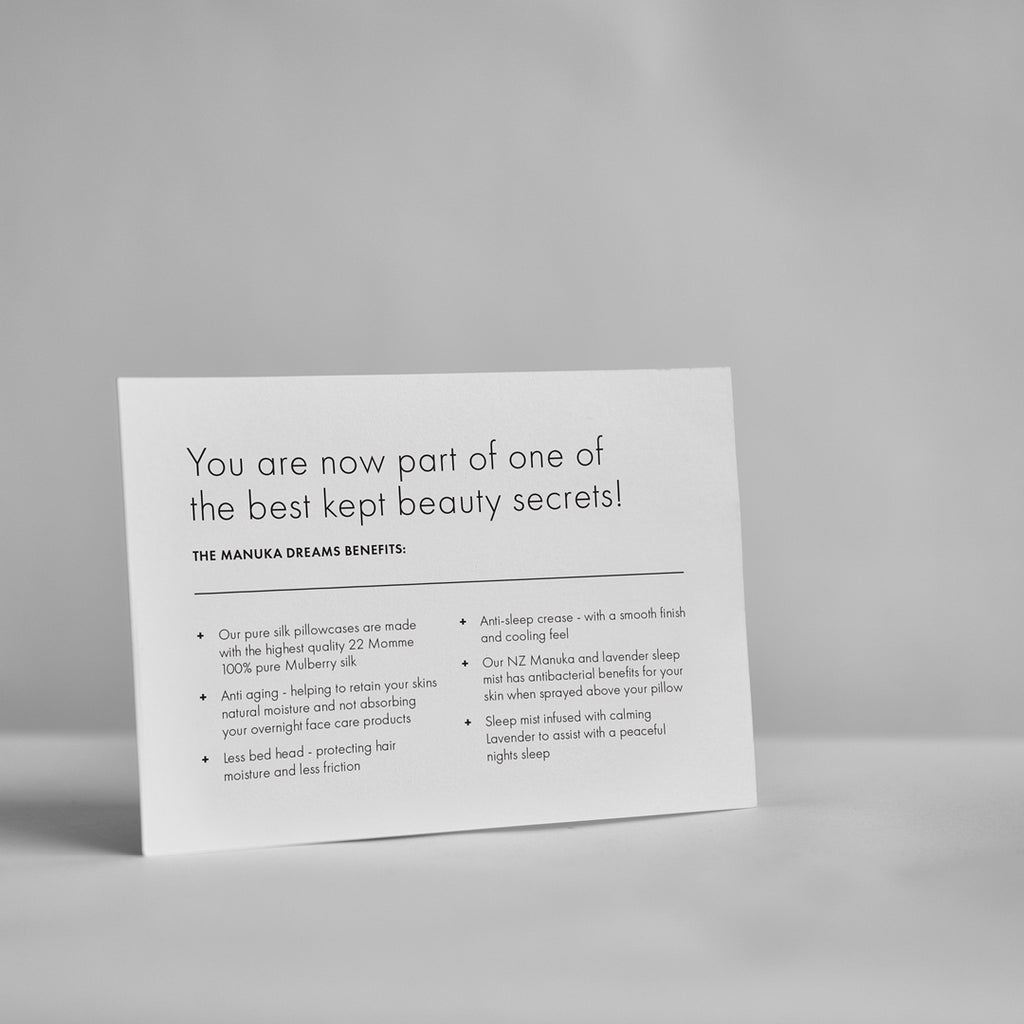 * PREORDER ONLY - Due to be stocked mid October and will be sent then. Includes 1 x Standard Size Lavender Silk Pillowcase in our Manuka Dreams White Reusable Gift Bag. Want to save with a set of two? Look under product 'Twin Dreams'.
